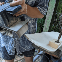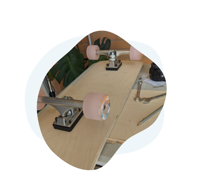 We crafted the mould and clamps that would be used to press the plywood that would produce the bend in the nose and tail (also known as a kick). After the body was formed and measured, the steps following involved a lot of nosy machinery and tools to shape the wood. With a bunch of sanding, the end product was smooth decks, reminiscent of old school skateboards.