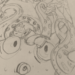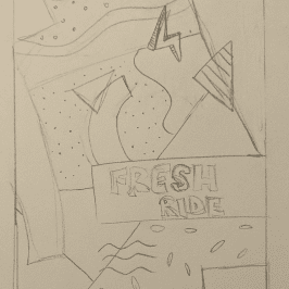 Using two different mediums - spray paint and acrylic - I added our personalities onto the board. Spray painting allowed shapes and colours to flow naturally and blend together. Spray paint was a much less technical and flowing media, crafting easy shapes and natural blending of the colours.